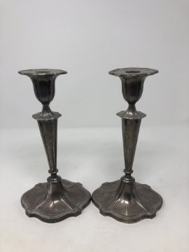 A pair of loaded silver candlesticks, Walker & Hall, Sheffield, with sconces, height 23.5cm.