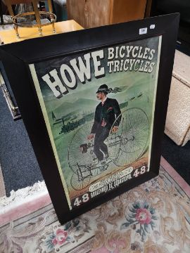 An oak framed advertising picture - Howe bicycles and tricycles