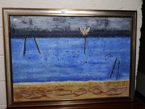 Continental school, oil on board - butterfly in landscape