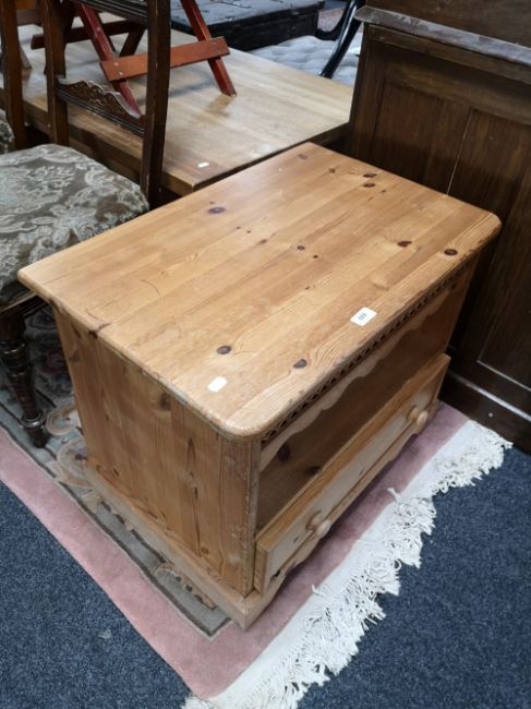 A pine entertainment stand fitted with a drawer
