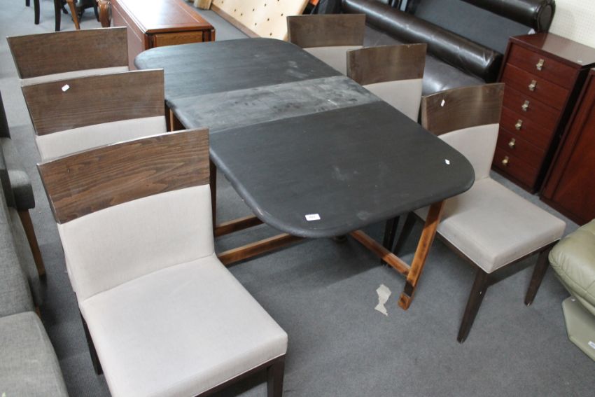 A painted extending dining table and six chairs