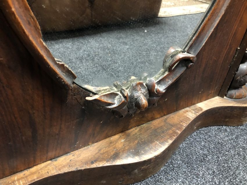 Lacking top. Scuffs to base and losses to some of the carving, see images. 118cm wide by 39cm deep by 83cm high.