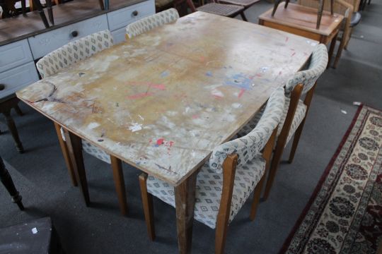 A mid century teak extending dining table and four chairs