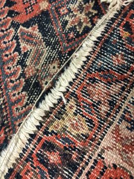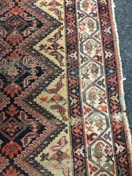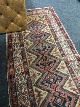 487cm by 112cm. Worn and faded throughout. Some fraying to fringes. See additional images.