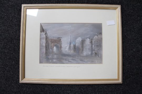 Keith Proctor : Central Station, Neville Street, Newcastle upon Tyne, pastel drawing, signed in pencil, dated 1990, 19 cm x 29 cm, framed.
