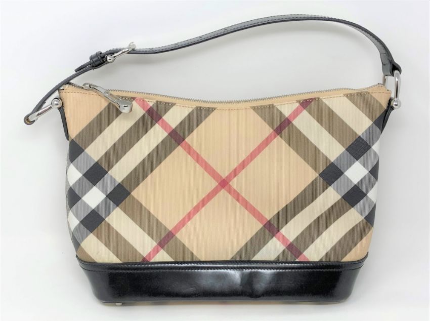 A Burberry Check Leather handbag, with black shoulder strap and zip opening, width 32cm