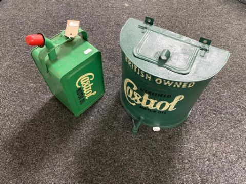 A vintage motor oil can together with motor oil dispenser