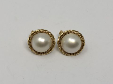 A pair of 18ct gold mabe pearl earrings.