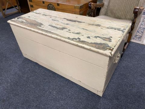 An antique painted pine blanket box