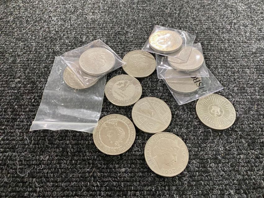 A bag containing ten £5 coins