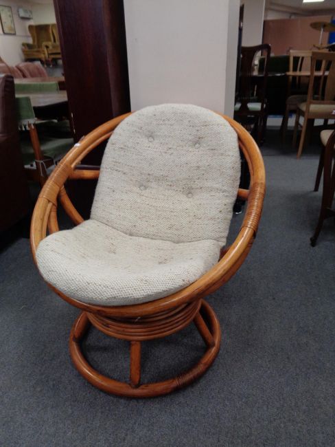A bamboo and wicker swivel tub chair
