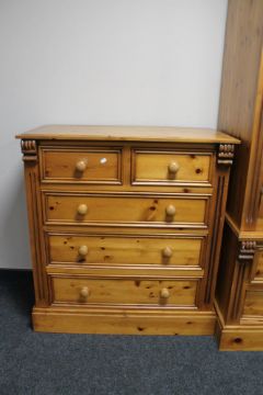 A contemporary pine five drawer chest