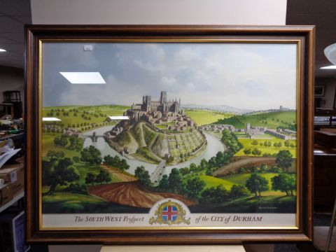 A framed Ronald Embleton print - The South West prospect of Durham
