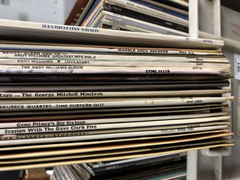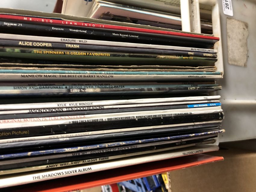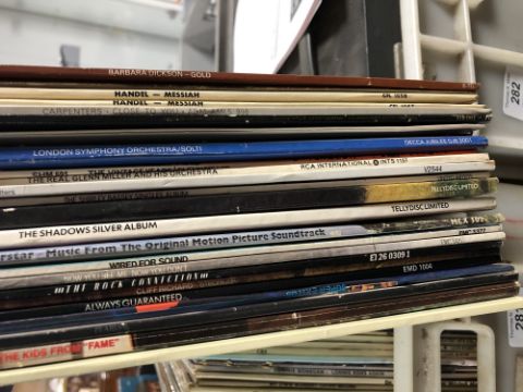 A box of vinyl LP's and 12 inch singles including movie sound tracks etc