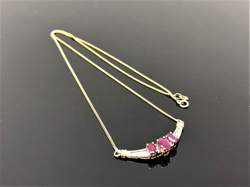 An 18ct gold diamond and ruby pendant on chain