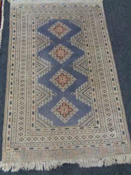 A fringed Eastern rug on cream ground, 165cm by 100cm