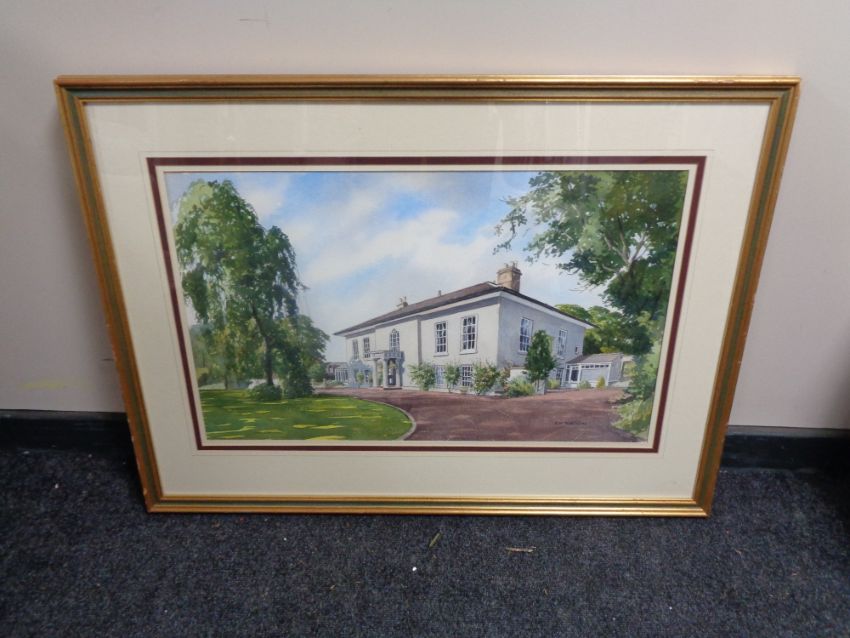 A gilt framed R. W. Thornton watercolour depicting a country house