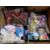 Four boxes of haberdashery and crafting items, china bells and fairy figures etc