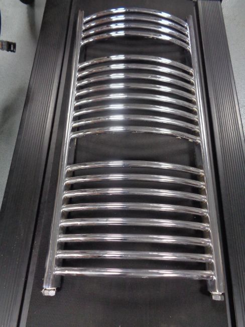 A chrome wall mounted heated towel rail