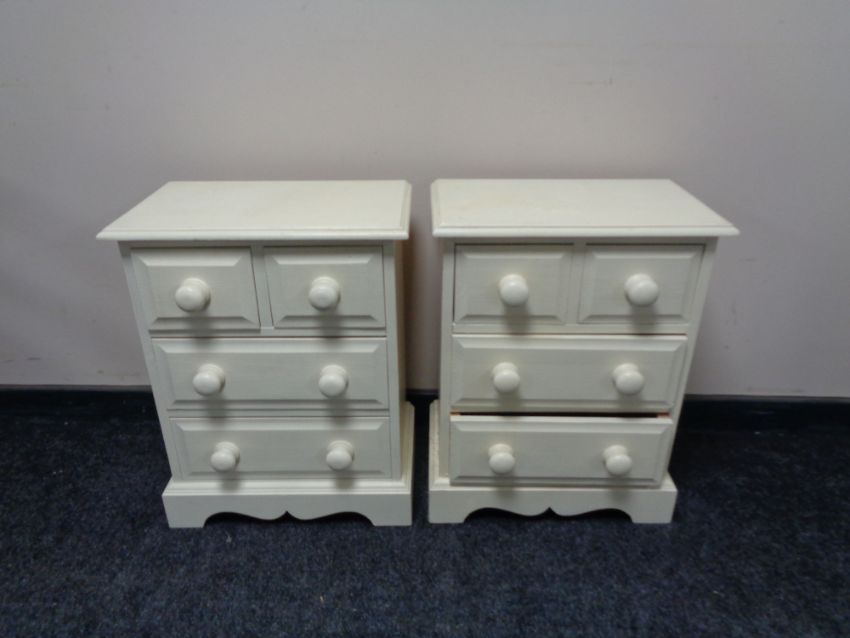 A pair of painted pine four drawer bedside chests