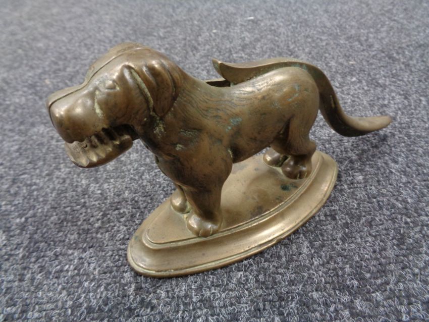 A 1930's brass nut cracker in the form of a dog