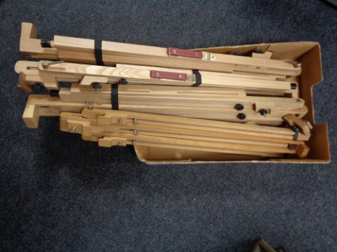 A box of four folding wooden easels