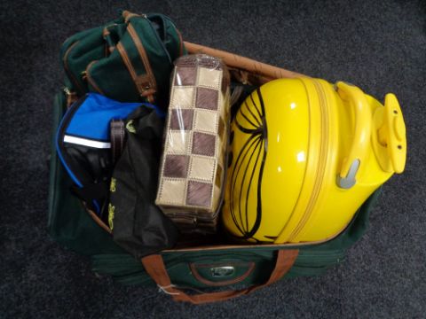 An Antler holdall, quantity of hand bags, child's luggage case etc