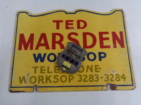 An early 20th century bookmaker's stand, Ted Marsden, Worksop, comprising hand painted Gladstone bag, sign, bookmaker's shield and parasol