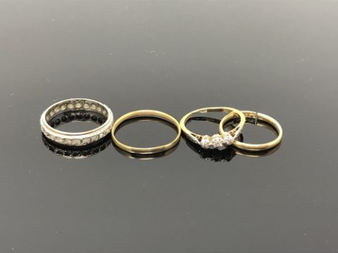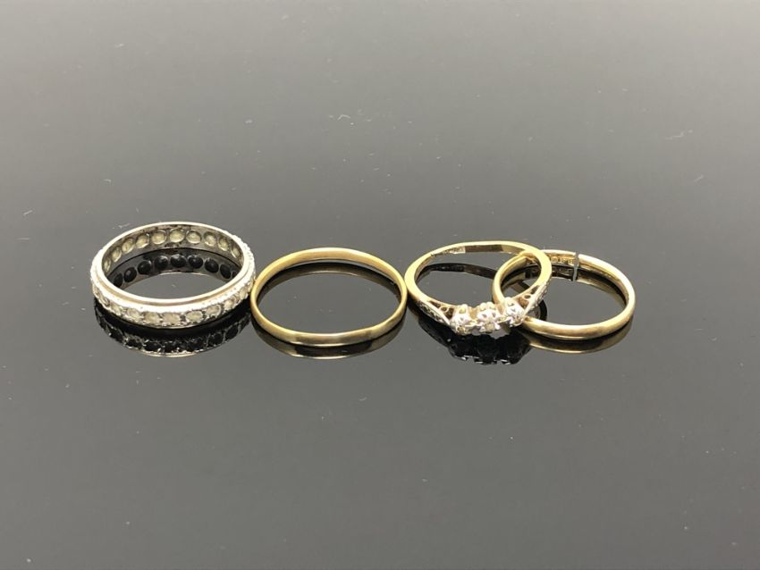 18ct ring - 1.7g. Three other rings 5.5g gross.