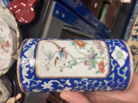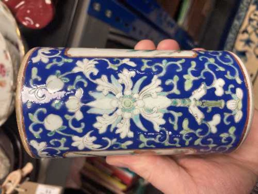 A tray of antique and later china, Chinese blue and white vases, Japanese brush pot, two Italian resin busts etc