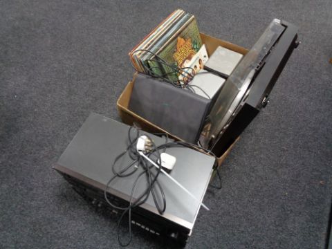 Four JVC hifi separates together with belt drive turn table, lps including Meat Loaf etc