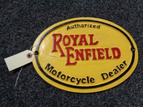 A metal Royal Enfield plaque