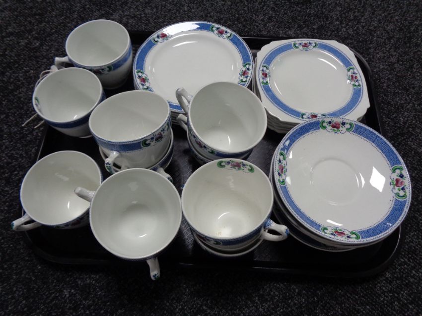 A tray of thirty five pieces of Maling tea china