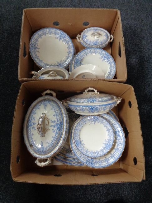Two boxes of antique Oxford K & C blue and white dinner ware
