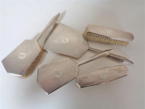 A five piece silver Art Deco dressing table set, Broadway & Co. Birmingham 1931(5)