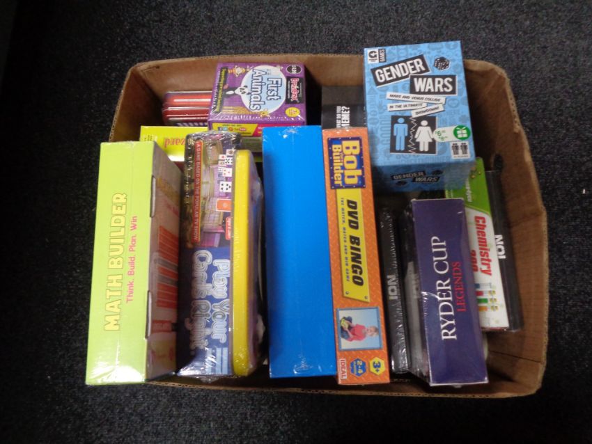 A box of sealed board games