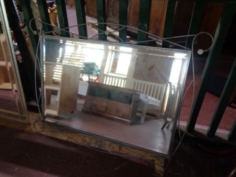 A metal framed bevelled mirror