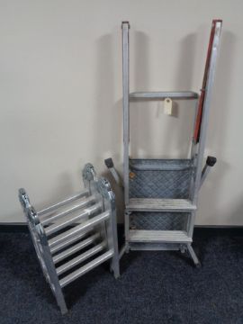 An aluminium folding decorating platform together with a folding multi function ladder