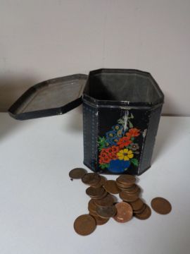 A tin of coins - one pence pieces etc
