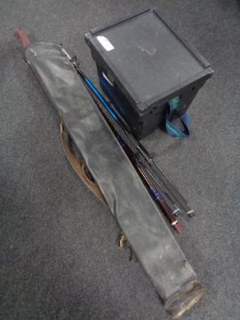 A Shakespeare fishing box containing a quantity of assorted rods and rod bags including match rod, spinning rods