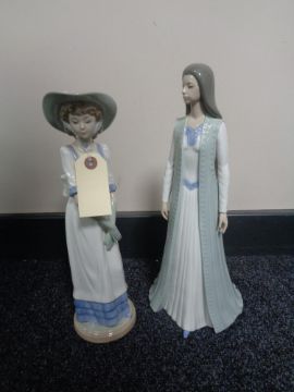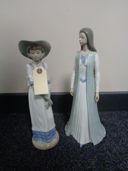 Two large Nao figures - girl with bonnet and lady in flowing dress