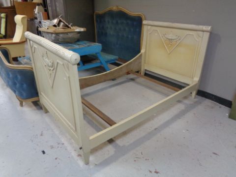 A 3'6" white painted antique French bed frame
