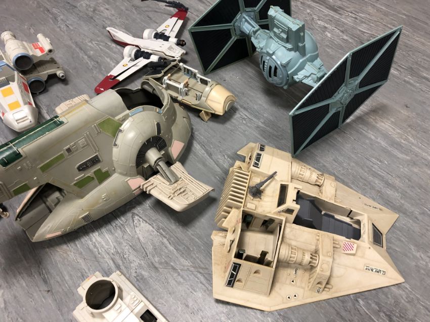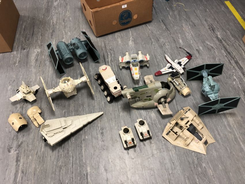 A collection of unboxed Star Wars vehicles including Imperial Star Destroyer, Snow Speeder, Tie fighters etc. (one box)