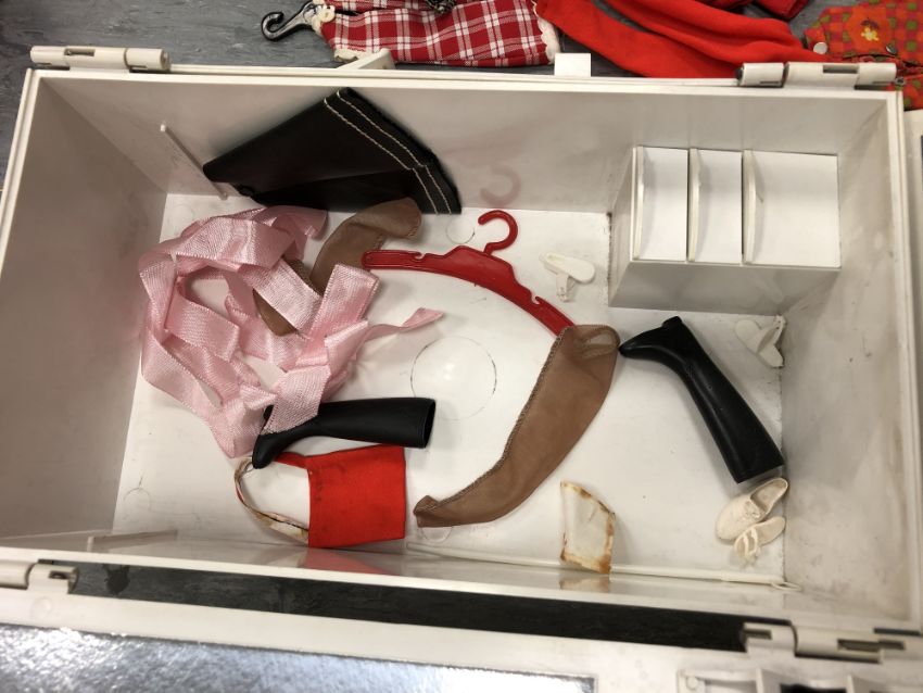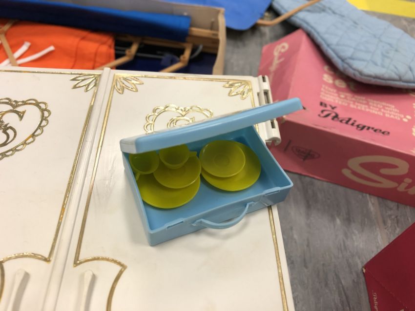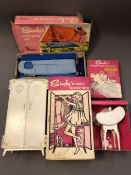 Sindy toys: Sindy's Bedside Table and Lamp, Camping Set and Sindy's Own Wardrobe. (3, all boxed)