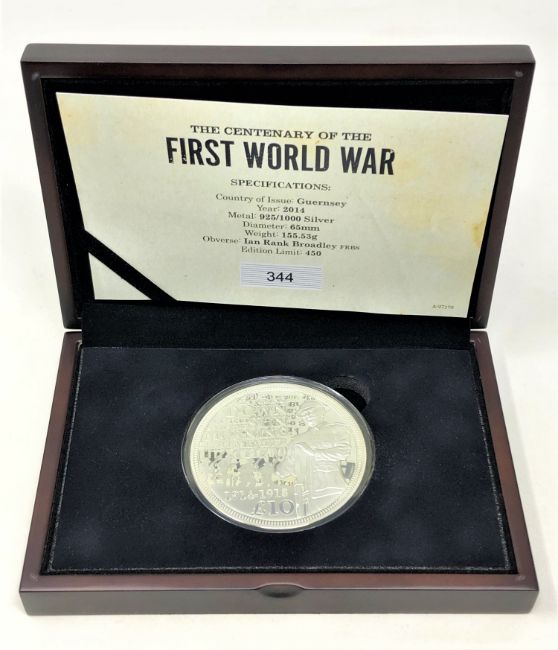 The London Mint Office - The Centenary of The First World War, 925/1000, 2014 Guernsey £10 coin, 155.53g.