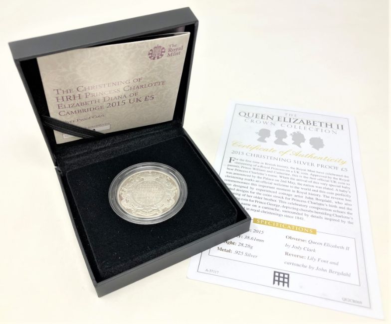 The Royal Mint - The Christening of HRH Princess Charlotte Elizabeth Diana of Cambridge UK £5 silver proof coin 2015, 28.28g.