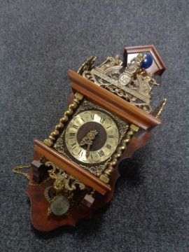 A continental and walnut brass wall clock with pendulum - no weights