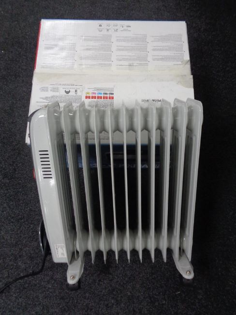A boxed Canon Pixma printer together with an oil filled radiator