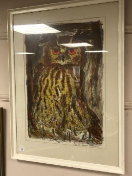 David Koster : limited edition print depicting an owl, numbered 930, 52 cm x 74 cm, framed.