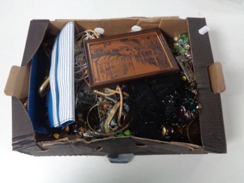 A box of assorted costume jewellery.
